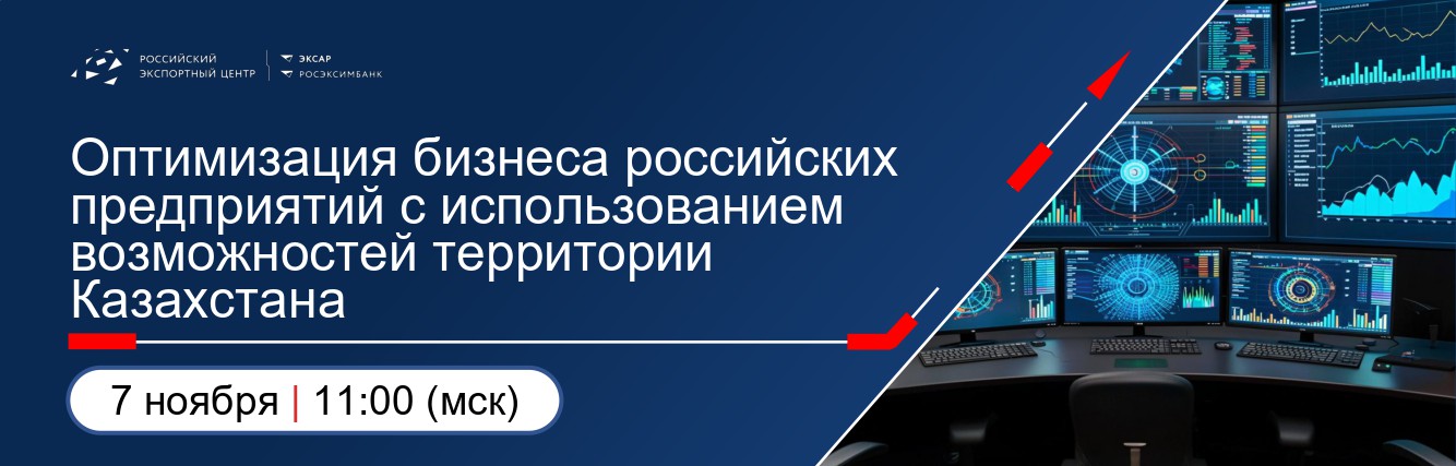 7 ноября 2025 года состоится вебинар «Оптимизация бизнеса российских предприятий с использованием возможностей территории Казахстана», организованный в рамках реализации национальных проектов «Международная кооперация и экспорт» и «Малое и среднее предпринимательство и поддержка индивидуальной предпринимательской инициативы».