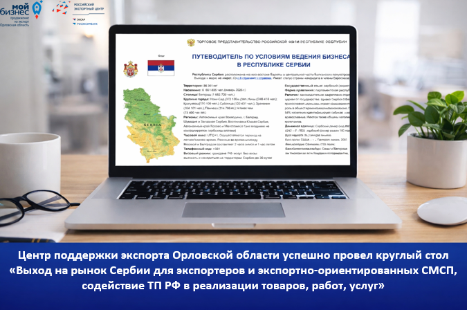 Центр поддержки экспорта Орловской области успешно провел круглый стол «Выход на рынок Сербии для экспортеров и экспортно-ориентированных СМСП, содействие ТП РФ в реализации товаров, работ, услуг»